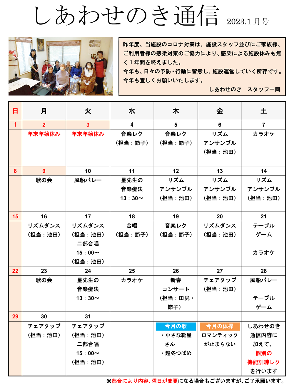 「しあわせのき通信」2023年1月号