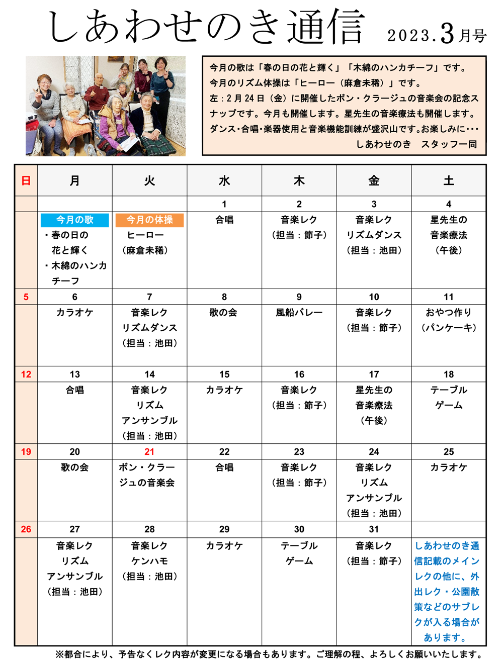 「しあわせのき通信」2023年3月号