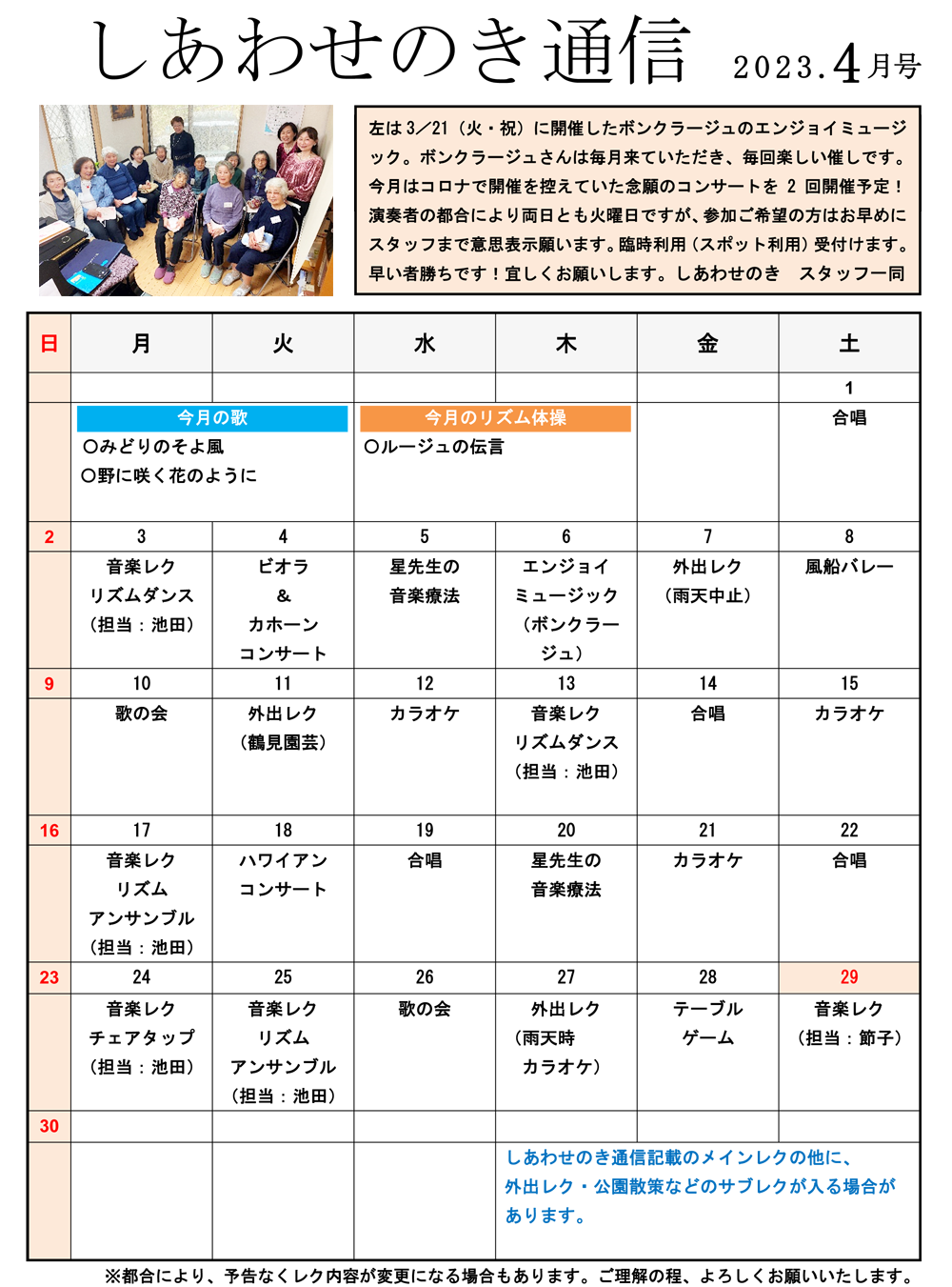 「しあわせのき通信」2023年4月号