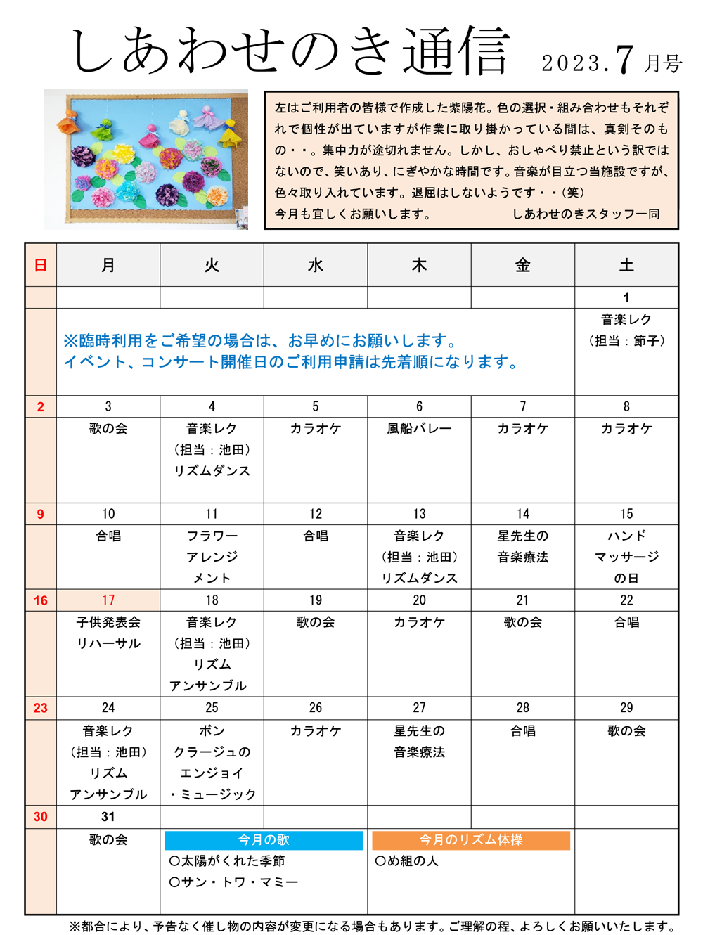 「しあわせのき通信」2023年7月号