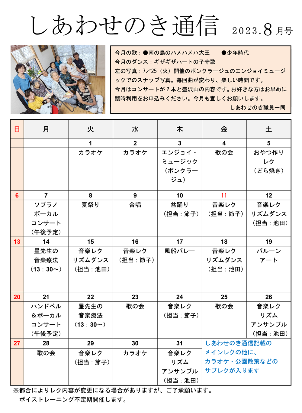 「しあわせのき通信」2023年8月号