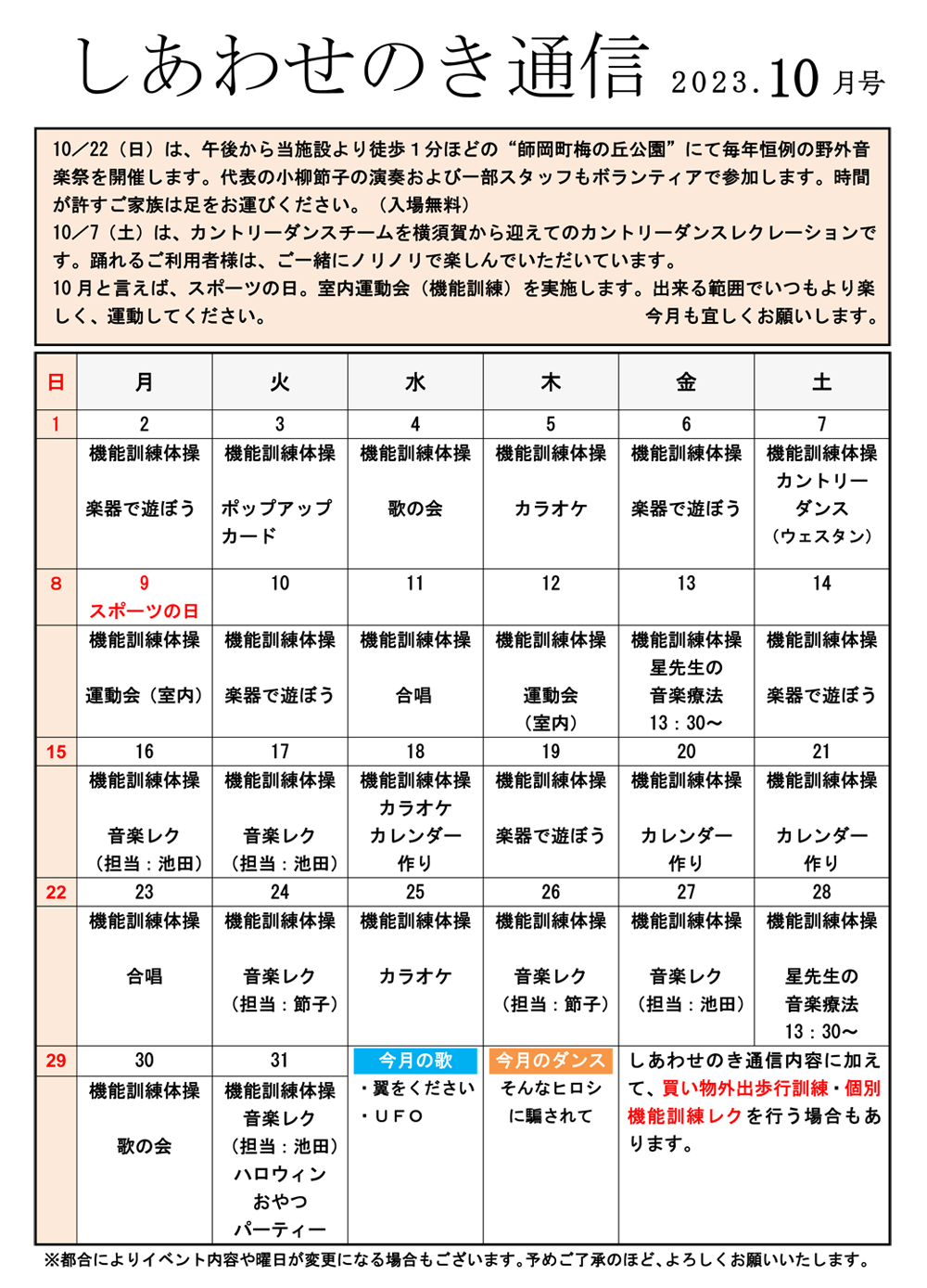 「しあわせのき通信」2023年10月号