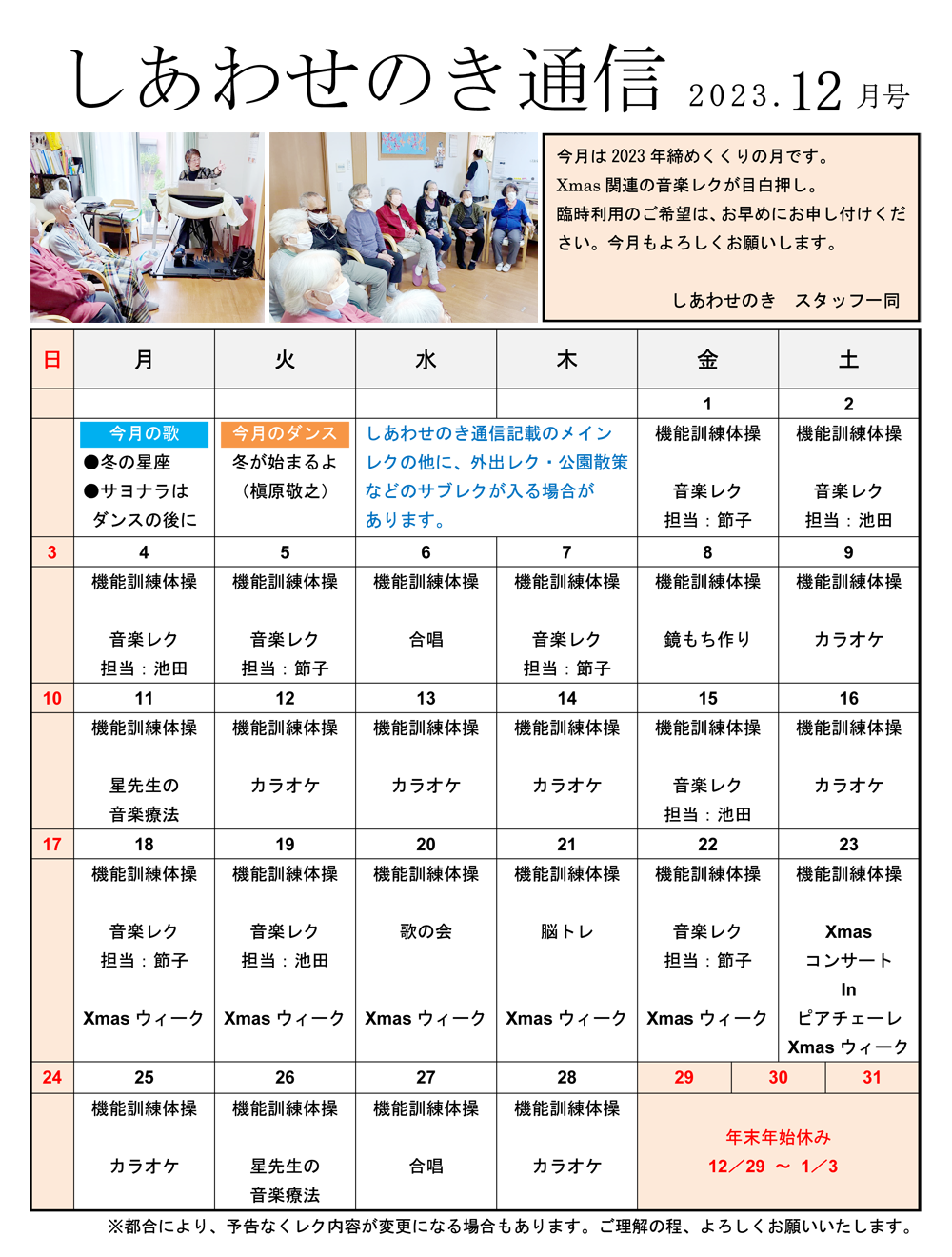 「しあわせのき通信」2023年12月号