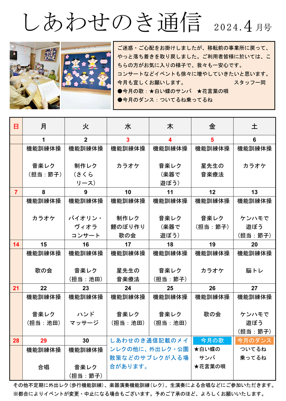 4月 「しあわせのき」イベント開催のご案内