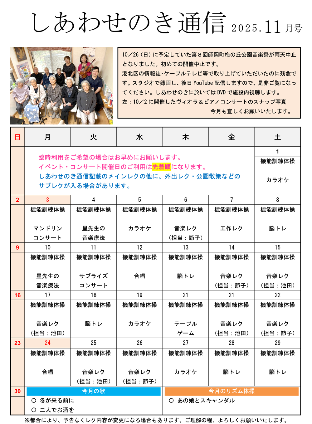 2025年11月 「しあわせのき」音楽イベント開催のご案内