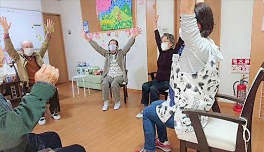 | 体操 | ![]() 機能訓練指導員による体操。指先から全身、運動機能の維持、向上を目指します。 |