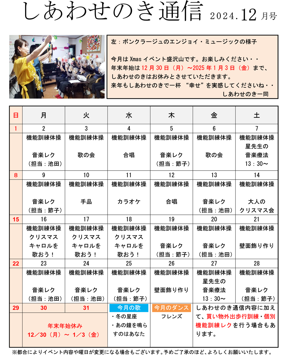 「しあわせのき通信」2024年12月号