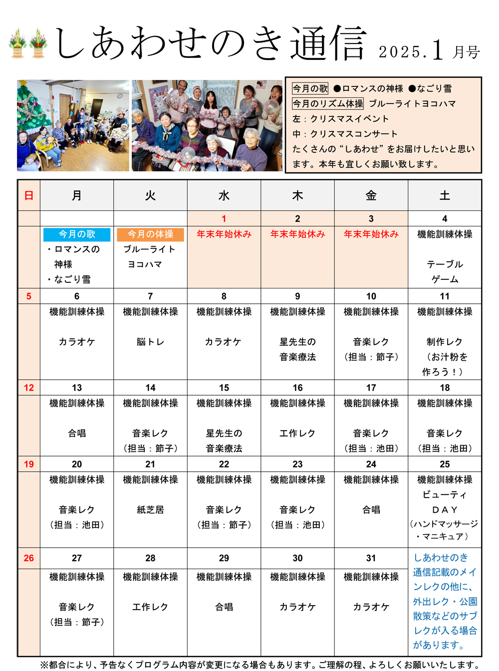 「しあわせのき通信」2025年1月号