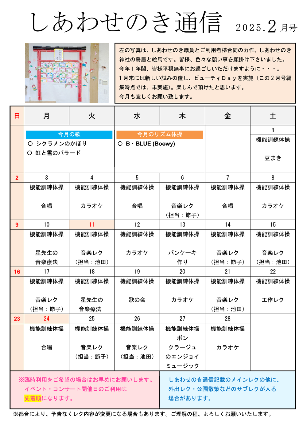 「しあわせのき通信」2025年2月号