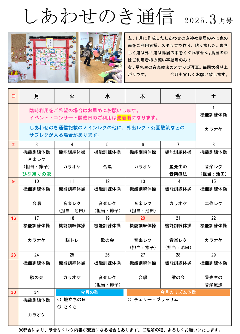 「しあわせのき通信」2025年3月号