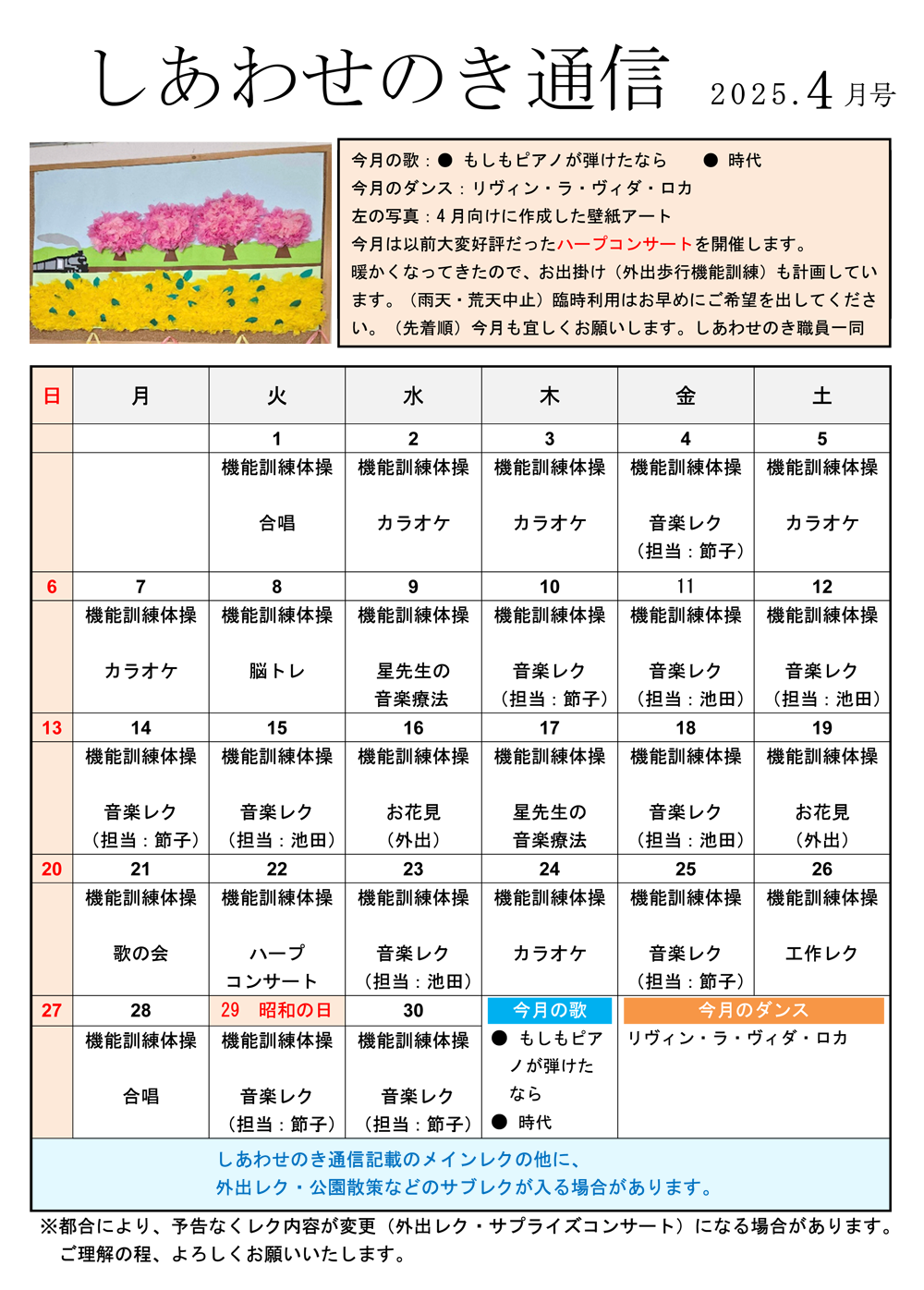 2025年4月 「しあわせのき」音楽イベント開催のご案内